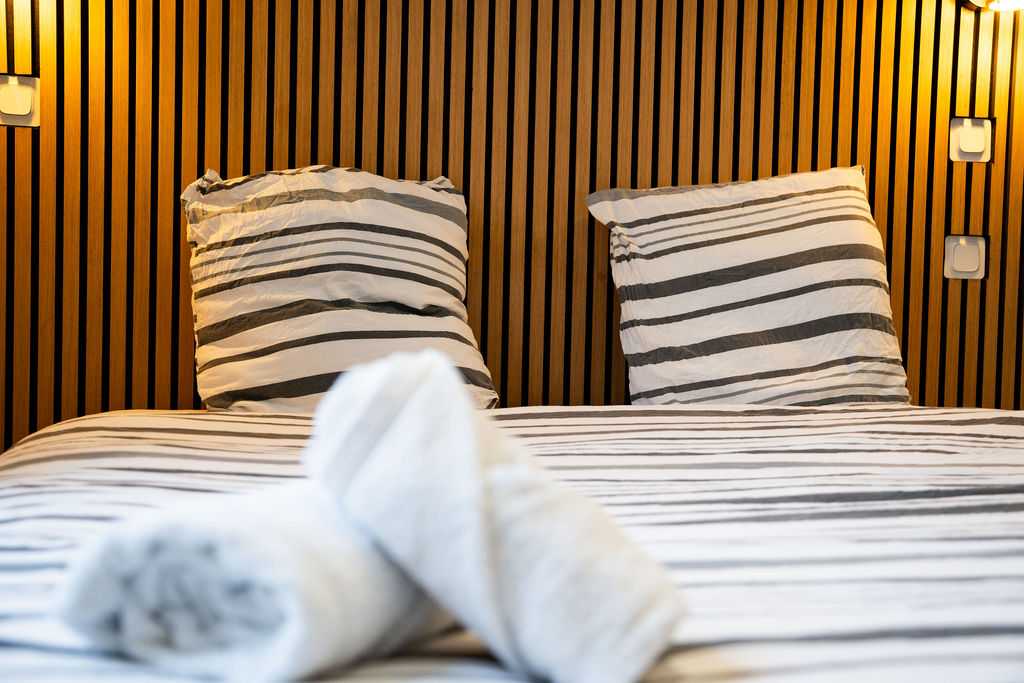 Nos studios sont équipés de literie haut de gamme pour garantir un sommeil réparateur à nos invités.
